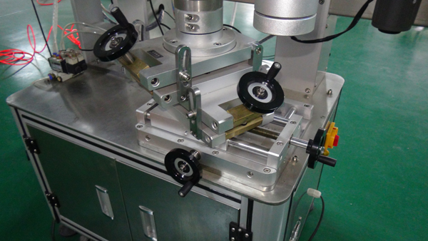 下圖展示的是貼圓周,電眼感應到產品給PLC一個信號,氣缸推出夾住瓶子,出標覆標同時完成,節約時間,增加效率。