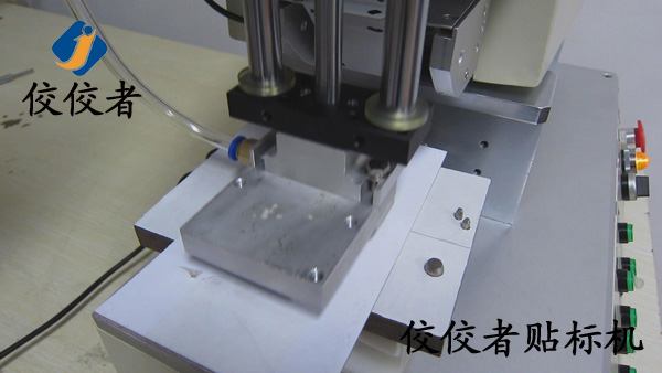 正常操作的時候工作人員將需要貼標的手機殼放在方便拿取的位置以增加貼標的效率,此時有一個步驟在圖片中沒有展示出來,那就是接通電源之后,需要做的就是將手機殼放在治具(固定產(chǎn)品用的模具,可根據(jù)產(chǎn)品的不同進行定制)中.然后踩腳踏,此時貼標過程已經(jīng)完成.看似只有一秒鐘的時間,在這個時間中,機器進行了一系列的工作.吸標頭向下垂直運動到指定位置,標簽剝離機構(gòu)同時出標,當標簽出到1/2處時,吸氣裝置啟動,吸住標簽,待標簽完全剝離,標簽也完全被吸在貼標頭上了,此時貼標頭向下貼標,到指定位置,這里說的就是產(chǎn)品放置的位置了.至此,貼標過程就已經(jīng)完成了。(操作過程:放產(chǎn)品—>貼標并覆標(設(shè)備自動實現(xiàn))—>取出已貼標產(chǎn)品。)如下圖: