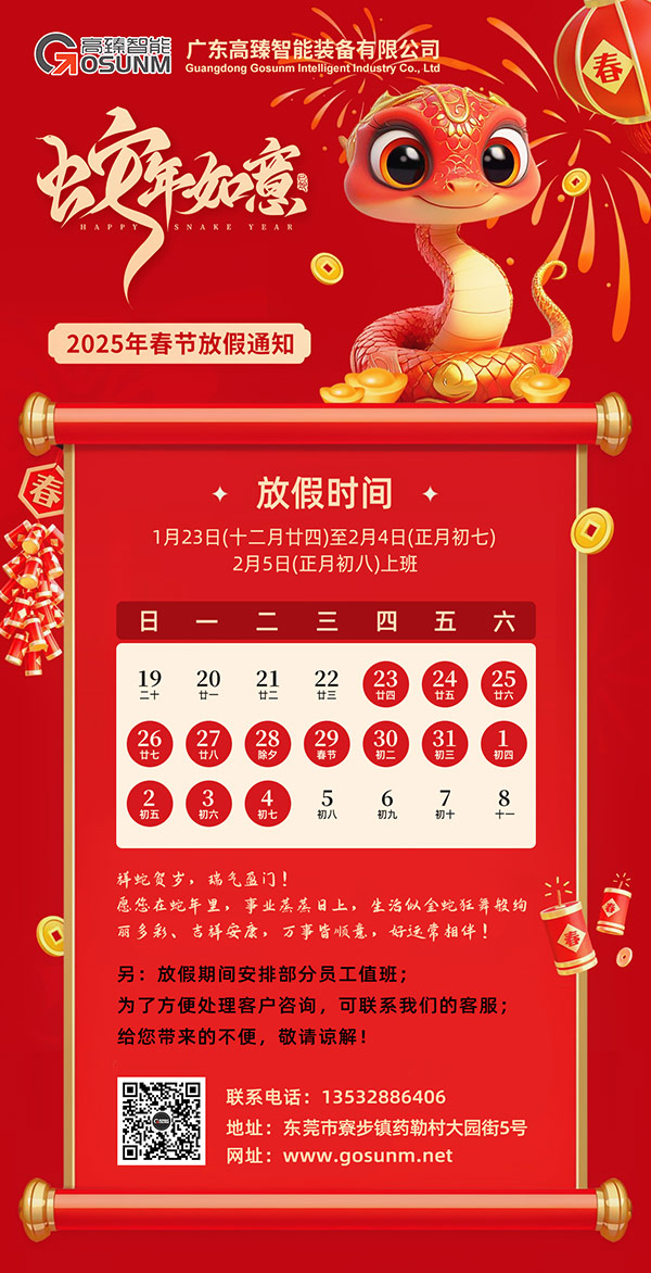 最后,廣東高臻智能裝備有限公司攜全體員工提前祝大家春節快樂,闔家幸福!