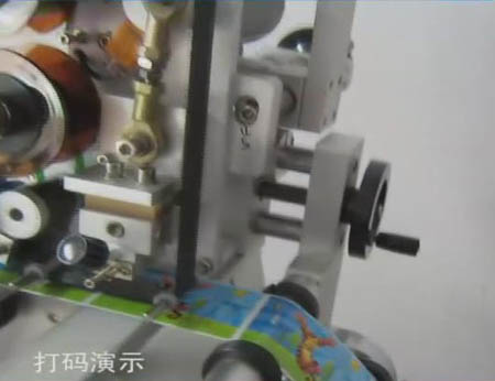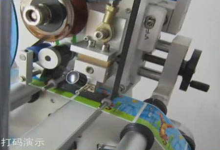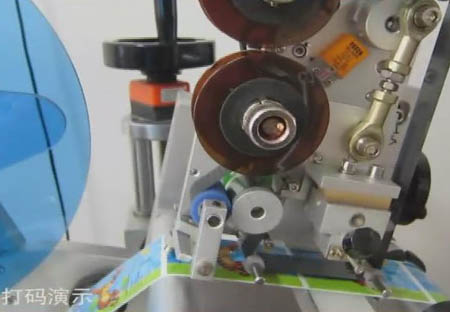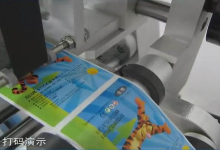 對(duì)產(chǎn)品一邊進(jìn)行貼標(biāo),一邊進(jìn)行打印文字。已經(jīng)是一個(gè)很容易就能實(shí)現(xiàn)的功能了。實(shí)現(xiàn)這個(gè)即時(shí)打印功能的東東,叫打碼機(jī)。一般的標(biāo)準(zhǔn)貼標(biāo)設(shè)備上都是可以進(jìn)行選配這個(gè)打碼機(jī)的。也就是說,幾乎所有的標(biāo)準(zhǔn)設(shè)備都可以進(jìn)行即時(shí)打印功能。我公司有一款典型的即時(shí)打印貼標(biāo)設(shè)備:全自動(dòng)臥式圓瓶貼標(biāo)機(jī)。