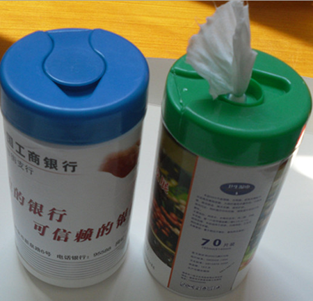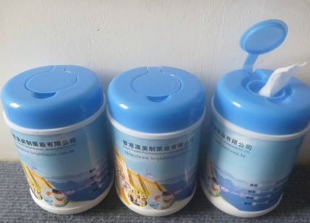 濕巾桶裝貼標機主要是對濕巾桶進行貼標的貼標設備。但是對于同樣形狀的產品也是可以通用的,像餐廳用的紙巾桶也可以貼。下面來看一下我公司的濕巾桶裝貼標機的貼標樣品圖片。