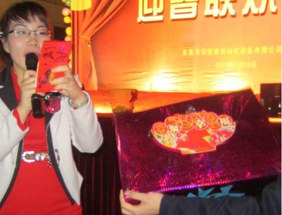 沒抽到獎品的人,著實讓人著急。不用但心,中獎率是80%。更重要的是還有額外禮品。手表、音響、電飯煲、購物卡、豆漿機。還有主持人現場從各位領導錢包里掏出的紅包哦。