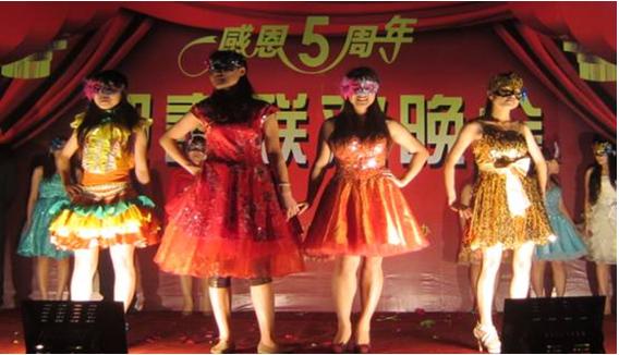 五周年年歡晚會,我們在廠內搭建了舞臺,辦了酒宴,宴請了客戶及供應商過來參加。我們的節目多姿多彩。還有豐富獎品禮品的抽獎環節。