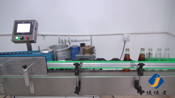 將瓶子放到上糊貼標機的傳送帶上,按顯示屏上的開始按鈕,機器便開始工作了,瓶子排列在傳送帶上,由于后面貼標位置的出標是有一定頻率的,人工估算又非常不準確,那么如何才能配合這個出標頻率呢?請先看下圖: