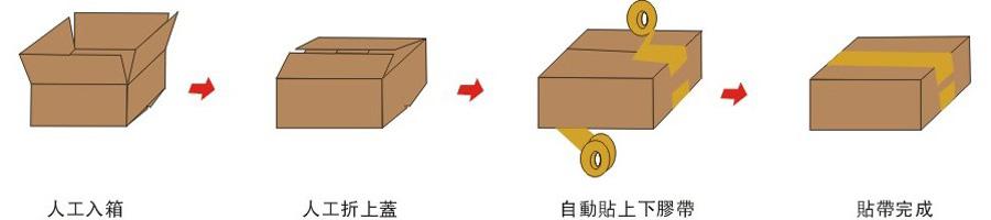 ◆ 本機型是以單機機型。上下“一”字型自動封箱包裝作業
